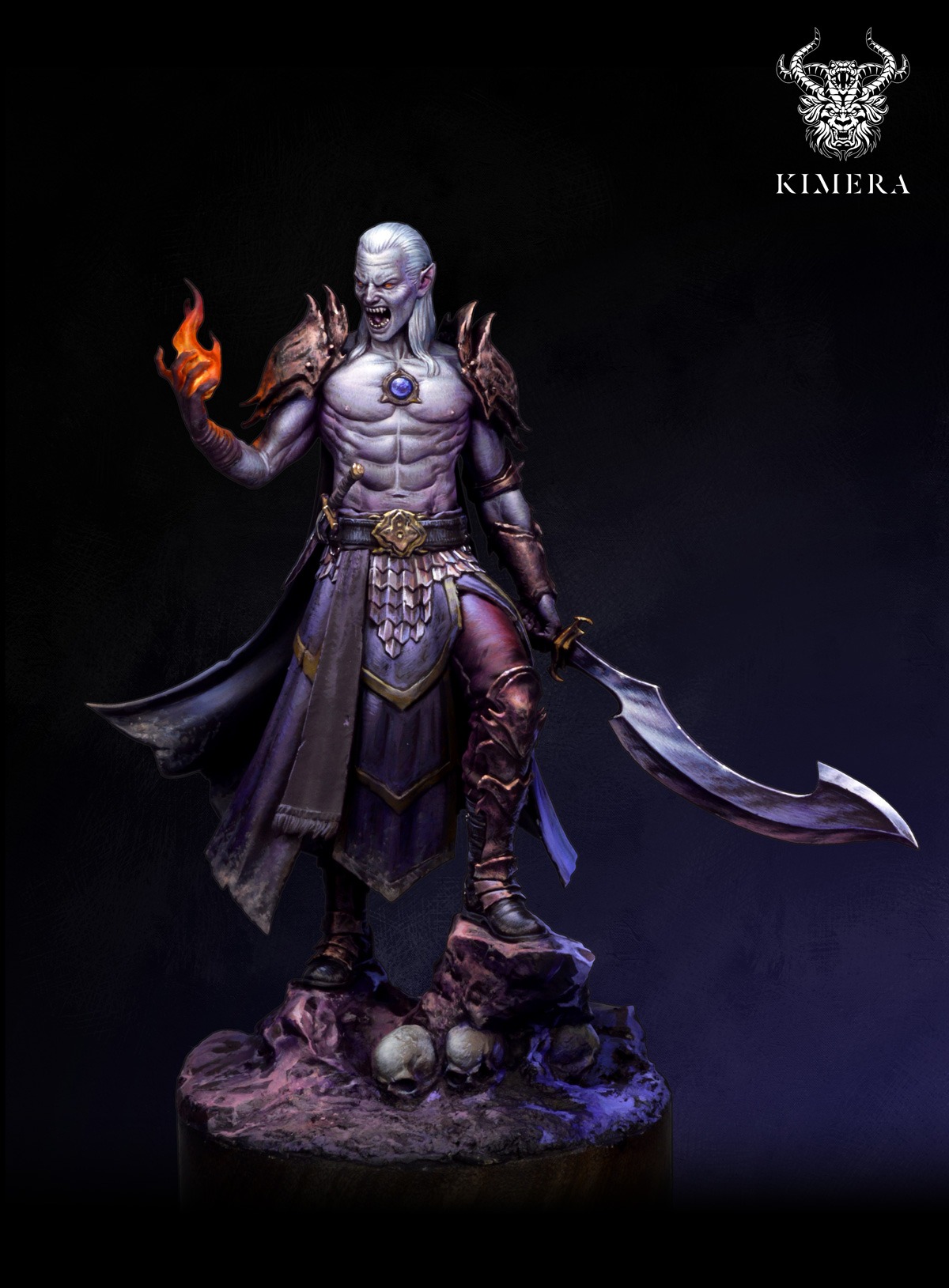 Armour plates, belts and ornamental trim frame the torso, giving plenty of anchors for saturated spot colours and controlled edge highlights. Large areas of skin let you explore cold undead tones, sickly glows or more human vampiric palettes, while the layered skirt, cape and tabard provide space for complex blends, glazes and textures. The sculpt reads clearly from every angle, so you can push contrast without losing clarity.