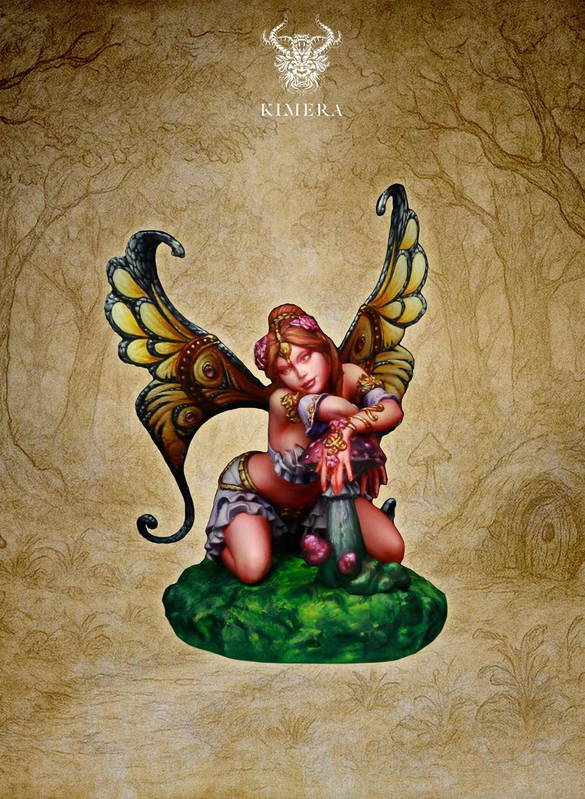 Nerine is a 75mm resin fairy miniature designed for painters who love expressive poses, refined detailing, and characters that tell a story at first glance. Part of the Wood Whisperers collection, she represents one of the students of the Fairy Academy, captured in a moment of quiet charm as she leans against a forest mushroom. Her design blends elegance and playfulness, making her an ideal project for artists who enjoy painting soft skin tones, subtle transitions, and vibrant wings.