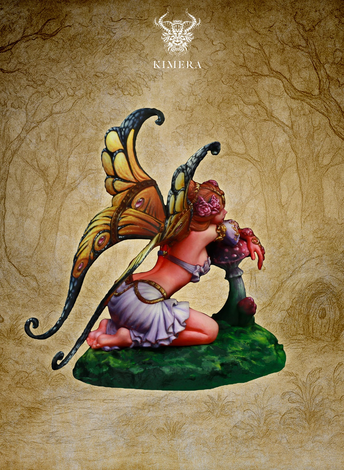 This fairy miniature is also an excellent study for texture variation: smooth skin, semi-transparent wings, fabric folds, forest vegetation, and the organic shapes of mushrooms. Each surface reacts differently to light, offering an engaging challenge for intermediate and advanced painters who want to refine precision and colour control.